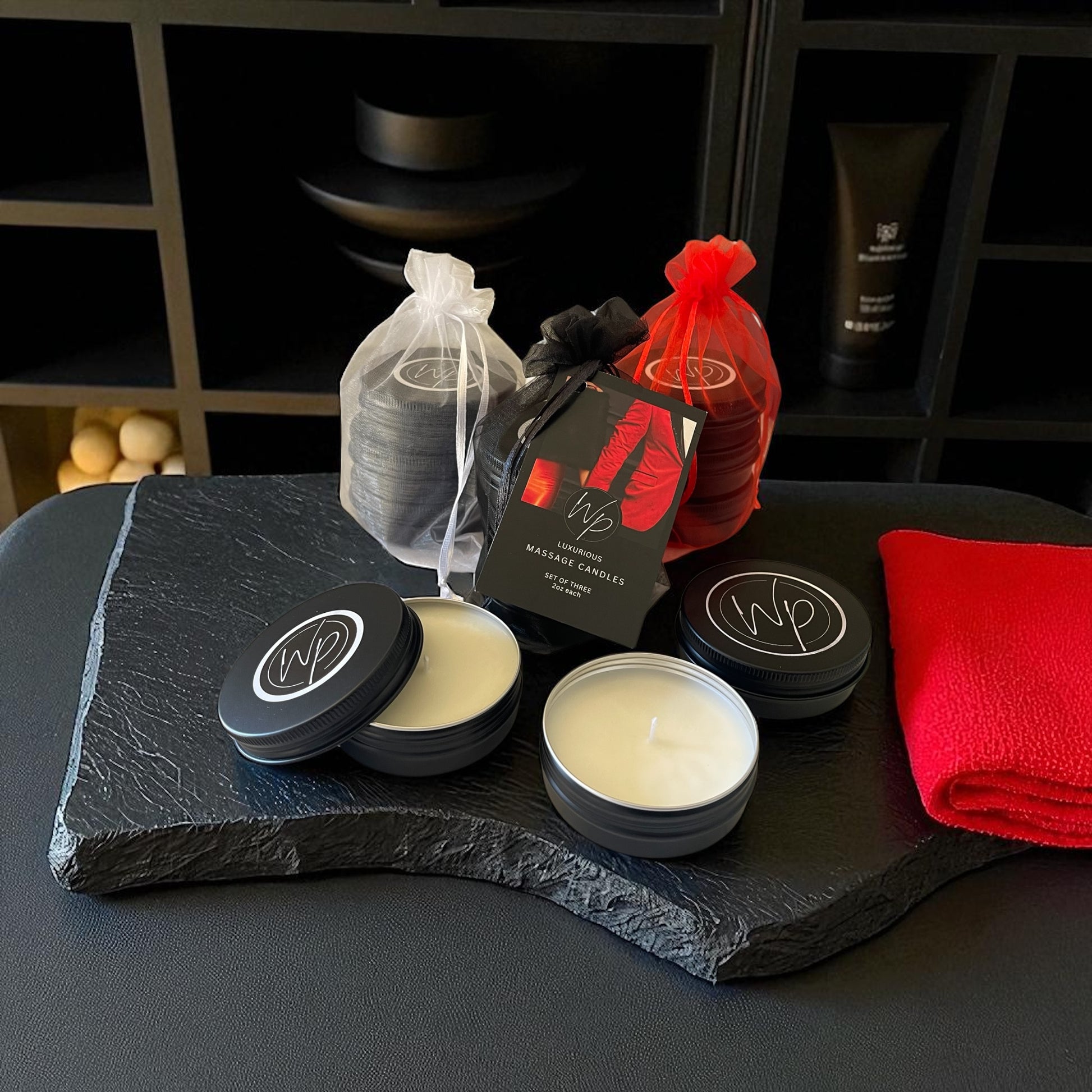 Hand-poured with love in Western Australia, our massage candles are crafted from premium, skin-loving ingredients that soften, hydrate, and leave the body delicately scented. Whether you crave something fruity, floral, sweet, or sparkling, the Perfect Trio is designed to inspire connection, relaxation, and romance.
