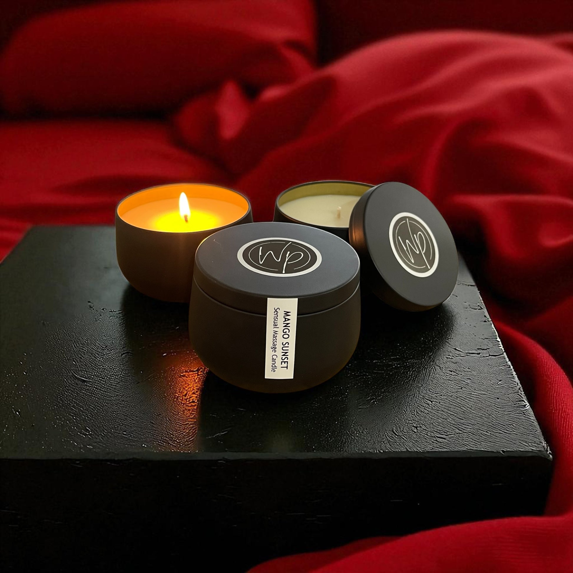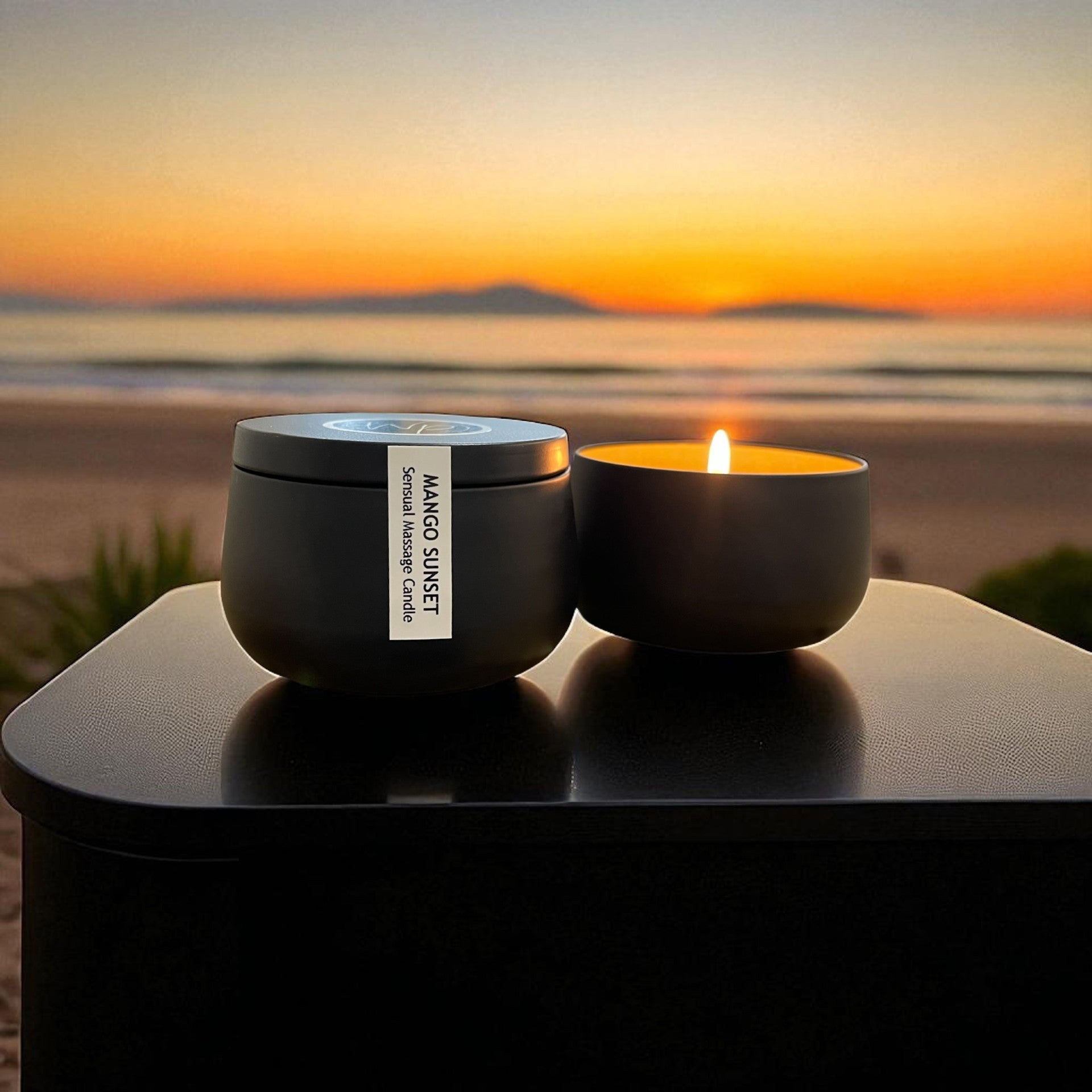 Ignite passion and serenity with the Whisper Pleasures Sensual Massage Candle β Mango Sunset.